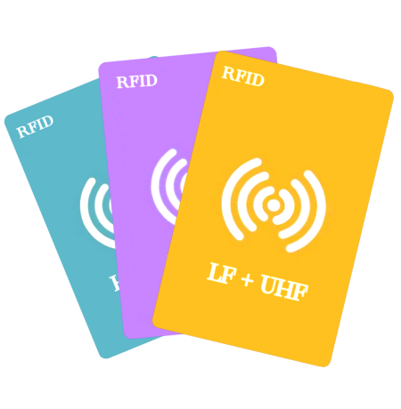 Dual frequency RFID card is dual frequency RFID transponder. Available a pair of Proximity chips, NFC chips with customized printing. These dual frequency ID cards used for RFID access control in resort, trade show badges, marketing events and membership.